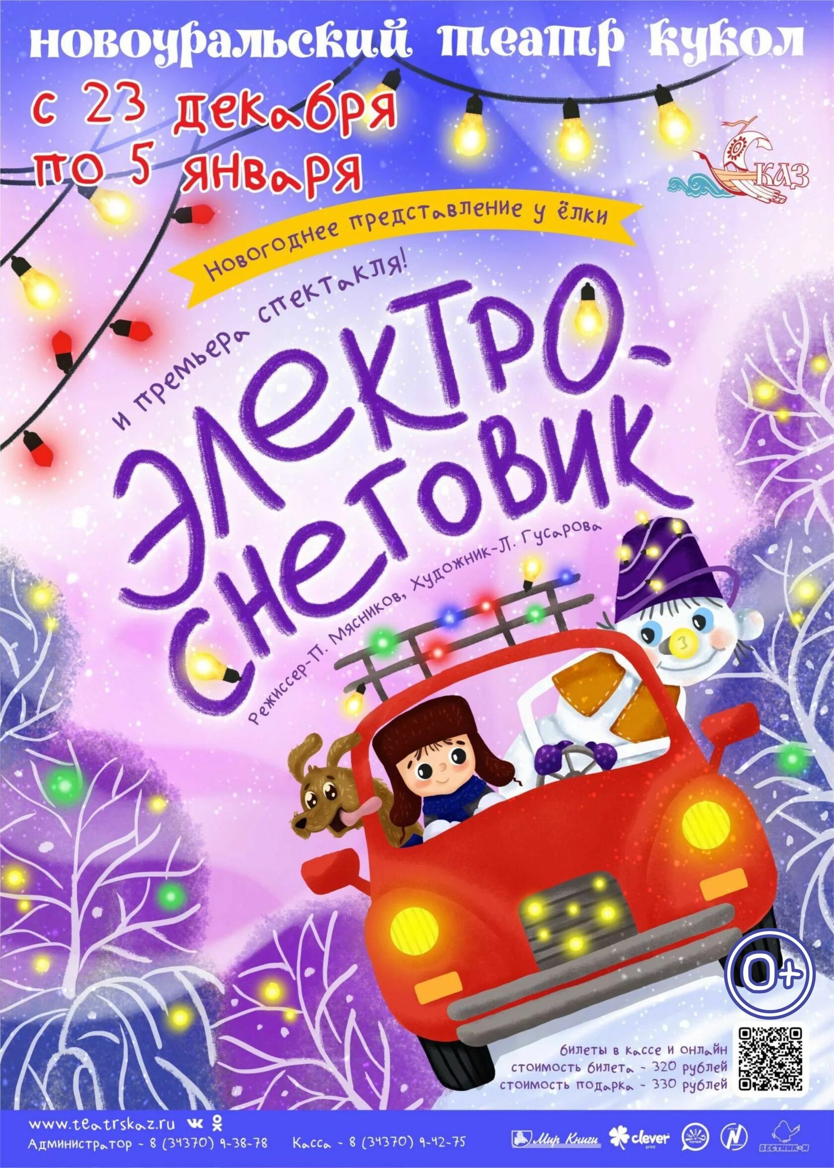 Накануне Нового года случаются чудеса, в этом убеждается Миша, который слепил снеговика и захотел отправить его в лес к Деду Морозу за елкой. Благодаря дворнику дяде Феде, снеговик не только ожил и стал сверкать разными огоньками, но и вместе с мальчиком отправился в лес на электроснегомобиле. Какие встречи ждут наших героев в зимнем лесу и с кем придется сразиться Электроснеговику, узнаете, если придете к нам на новогоднее представление.